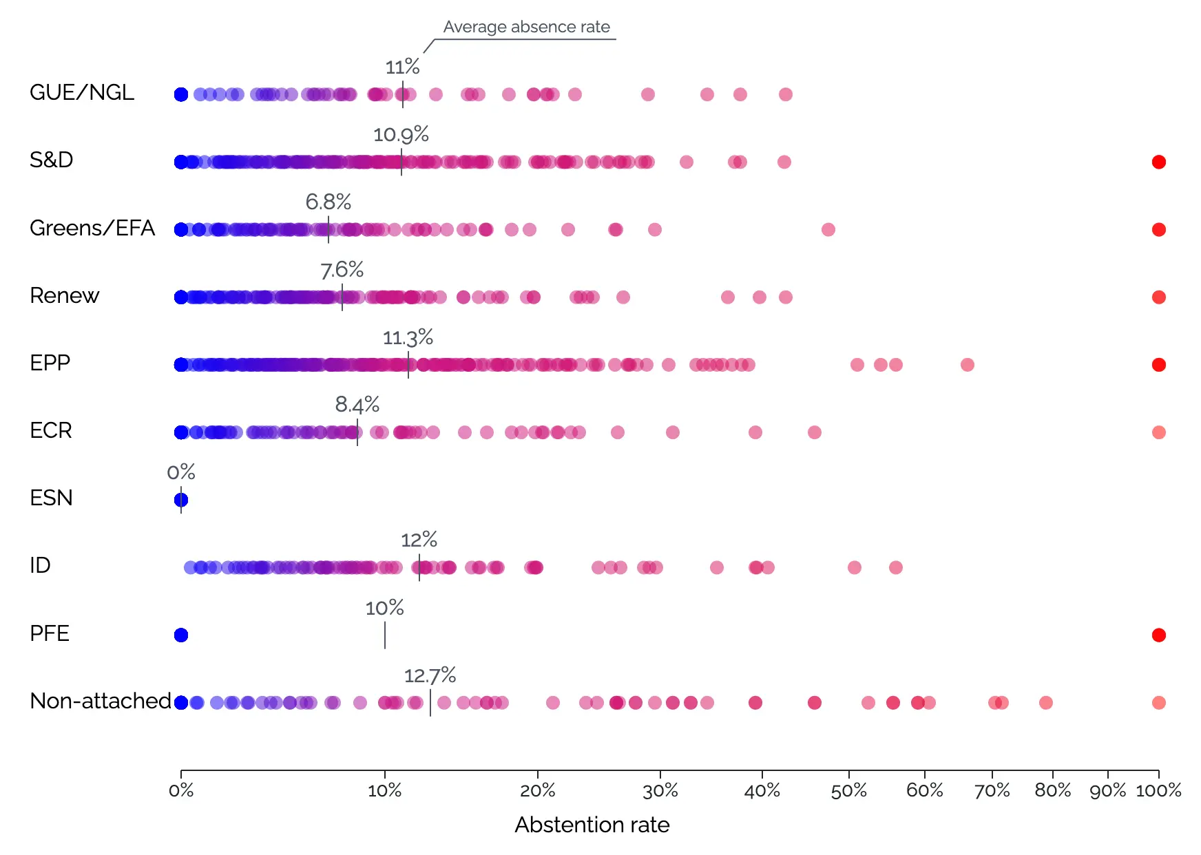 Graphs to illustrate the absenteeism of MPs based on their average absences or absenteeism compared with other MPs. The graphs are interactive and you can see the details for each MP.
