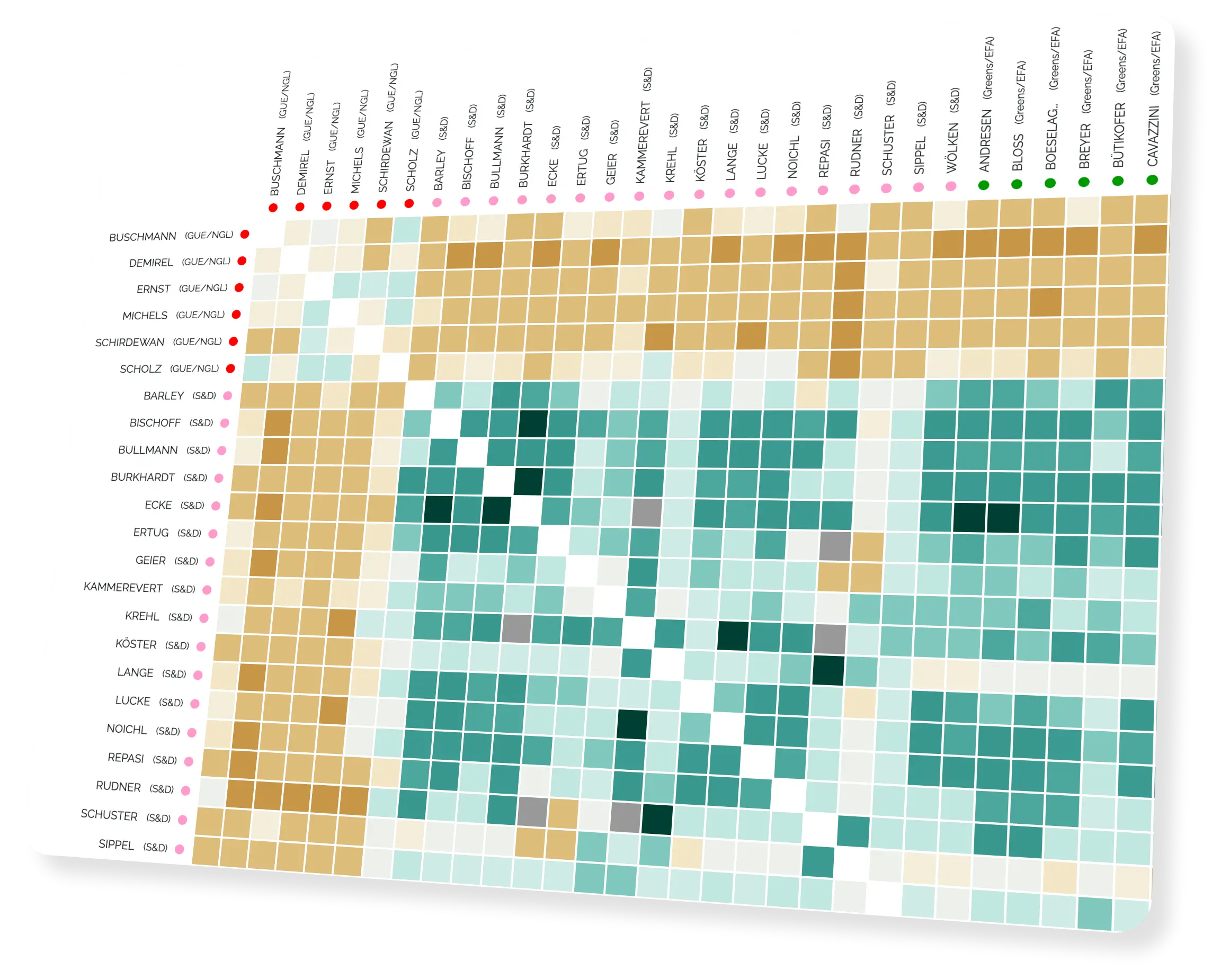 You will be able to select one or more PMs and see all of their votes You can choose which type(s) of vote you wish to compare